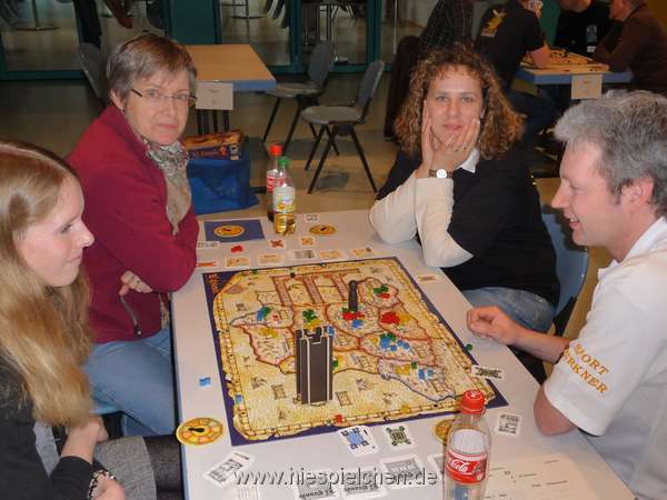 Für Team "Neu gemischt" mit Katja Harbs, Klaus Harings, Kristiane Hollenberg und Silvia Kastner holte Katja 14 der 41 Punkte und erspielte sich damit Rang 8 der 13 teilnehmenden Mannschaften. Wie in den vergangenen Jahren wurde gerade mit älteren Spielen am meisten gepunktet. So auch in diesem Jahr mit "El Grande", während bei "7 Wonders", "Kingsburg" und "Airlines Europa" das kleine Quentchen Glück für die direkte Qualifikation fehlte.