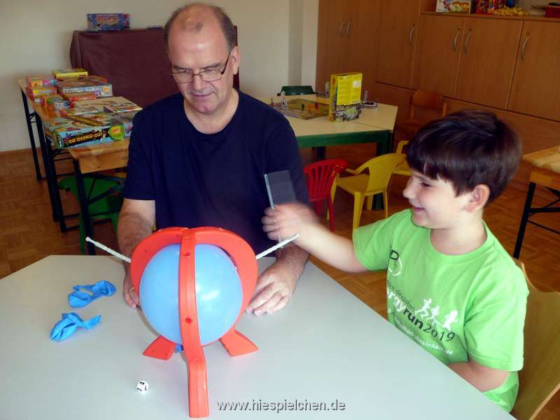 Bei den Aktionsspielen waren „Bumm Bumm Ballon“ und das alte „Moonball“ der Renner. Außerdem wurden „Looping Louie“, „Husarengolf“, „Weykick“, „Bonk“, „Klask“ gespielt und da das Wetter mitspielte auch draußen auf der Wiese „Kubb“ und „Crossboule“.