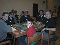 36 Teilnehmer begrüßte die Schirmherrin Frau Hildegard Niklas, Vorsitzende des Jugendhilfeausschusses, zu Beginn mit Frank Schumann von Jugendamt der Stadt Dinslaken im evangelischen Gemeindehaus Kirchstraße in Hiesfeld. Nach gut drei Stunden standen die 20 Teilnehmer der Halbfinale fest darunter auch Spielefreund Wolfgang, der extra aus Frankfurt angereist war. Während ein Teil der ausgeschiedenen Siedler die historischen Szenarien und die dank der Unterstützung von KOSMOS umgebauten Spiele Siedler von Dinslaken ausprobierten, lieferten sich die Herren der Schöpfung unter der Moderation von Autor Raimund Dreier an dem von ihm in aufwendiger Kleinarbeit erstelltem Großspiel einen Wettlauf um die längste Straße einschließlich Brücke oder Fähre über den Rhein. So baute Kristiane ihre Siedlungen und Städte um Rittertor und die Zeche Lohberg und finanzierte mit den Goldeinkünften weitere Ausbauten.