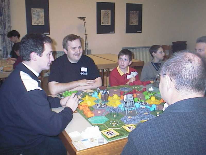 Knapp aber souverän zog Kristiane Hollenberg aus Hiesfeld nach drei Runden Die Siedler von Catan ins Finale der ersten Meisterschaft von Raimund Dreiers Szenario Die Siedler von Dinslaken ein. Mit von der Partie Klaus Hußmanns aus Krefeld, Hartmut Thordsen und Gerd Terboven aus Dorsten und der erst zehnjährige Stefan Kastner aus Flüren, dessen Konzentration nach über 6 Stunden Würfeln um gutes Wetter auf Deutschlands Spieleinsel Nr. 1 CATAN dann doch merklich nachließ.